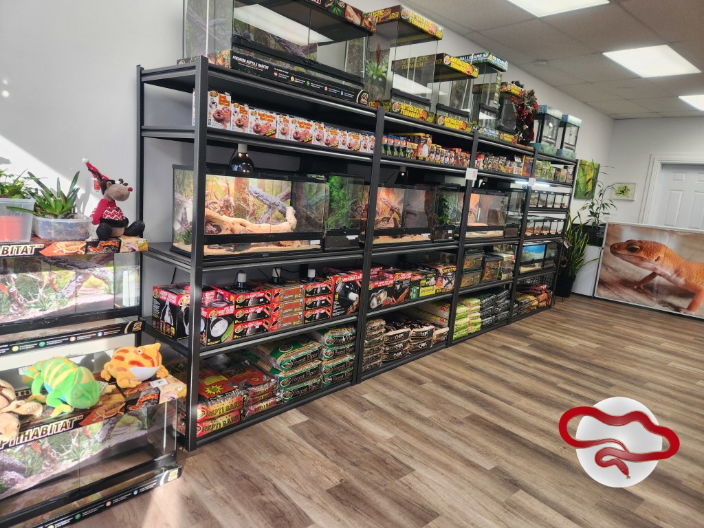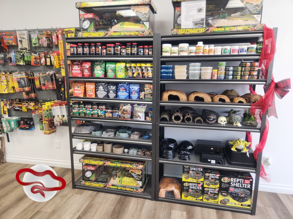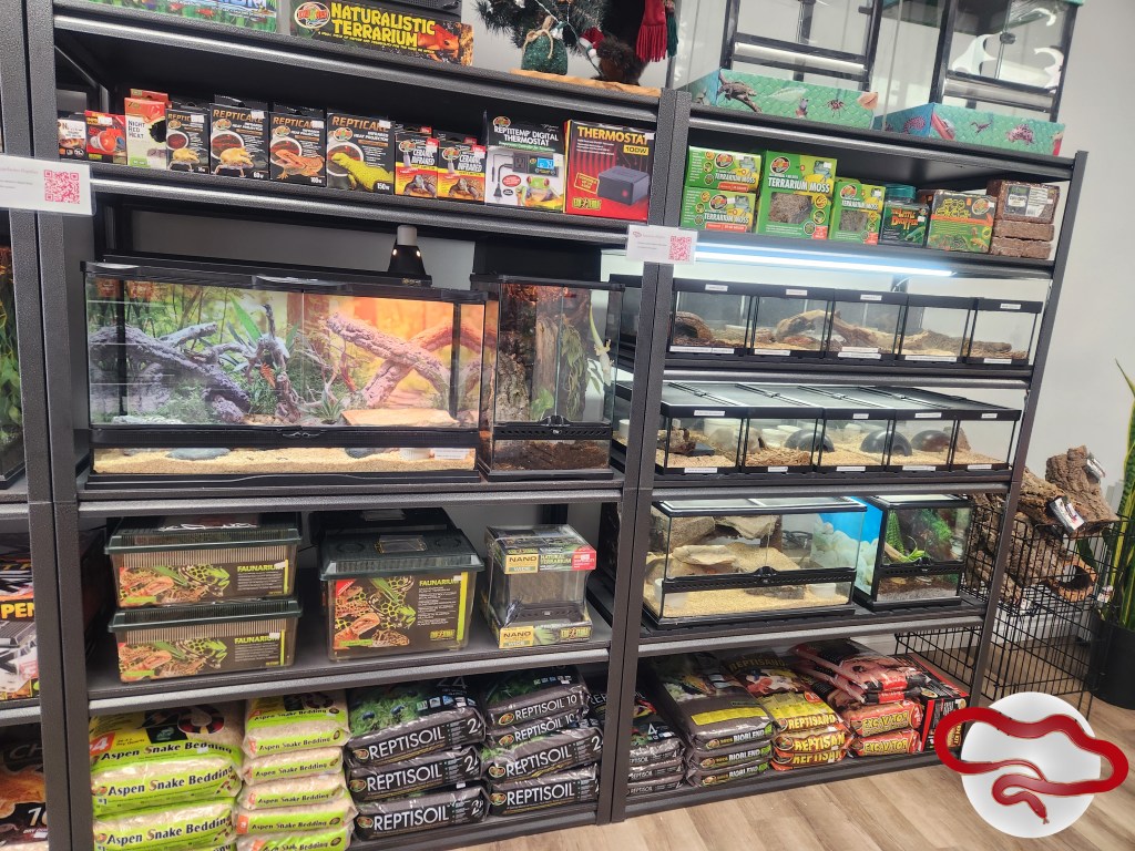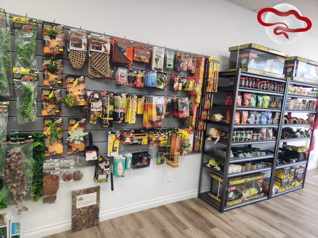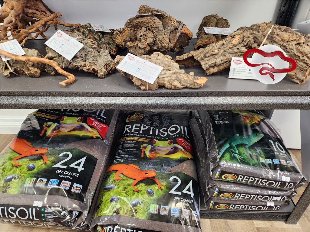 La boutique d’Appalaches Reptiles contient tout le nécessaire pour la garde en captivité de reptiles: ampoules, lampes, tubes fluorescents, suppléments, aliments, substrats, terrariums, cachettes, décorations, etc.
