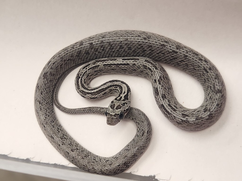 Tessera anery (Het amel, charcoal, motley) X Tessera snow (Het motley, Het scaleless)
