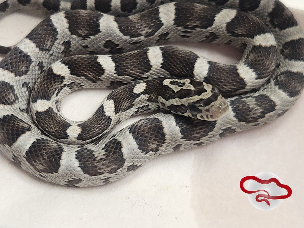 Tessera Classic (Het amel, anery, charcoal, motley, diffused) X Blizzard (Het diffused, anery, motley)